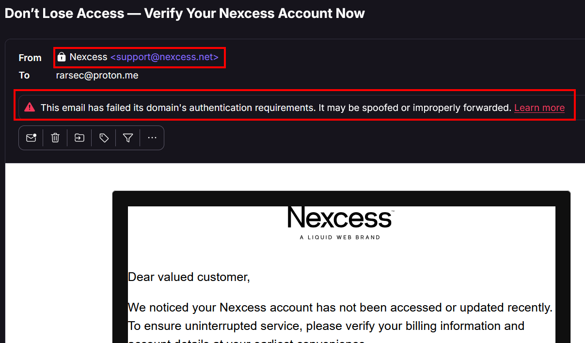 Lets focus on this: dmarc=fail (p=none dis=none) header.from=nexcess.net