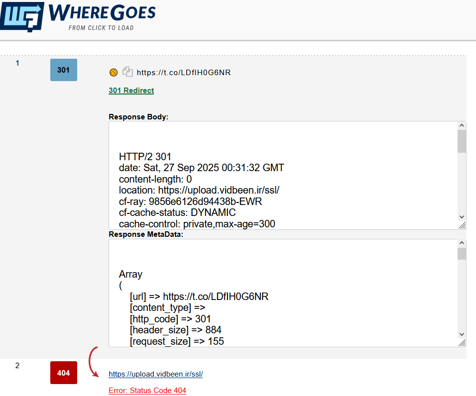 Would’ve really loved analyzing it further but its redirecting me to a page on an iranian website thats returning 404 Not Found Status Code.
